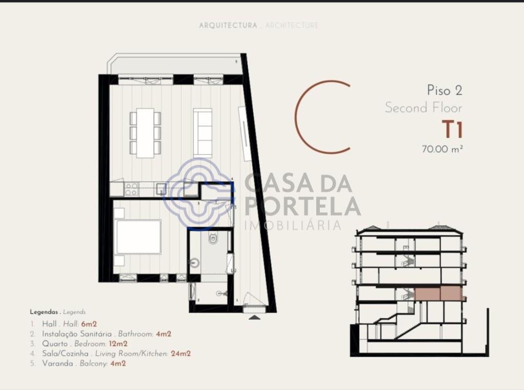 -Área coberta - 58 m2 -Área exterior- 12 m2 -Com varanda na sala - 5 m2 -Terraço no quarto- 7 m2 -cozinha totalmente equipada -acabamentos superiores